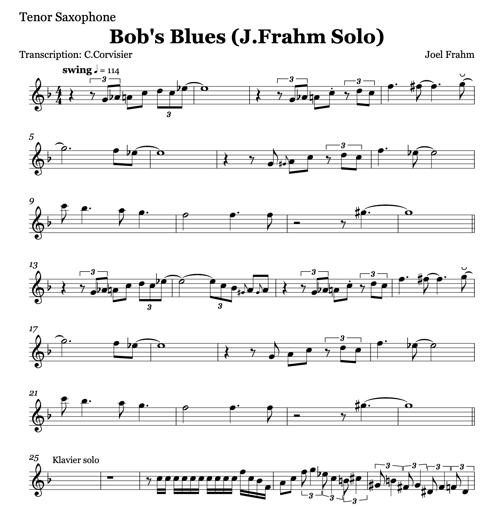 Bob's Blues - Soloist: Joel Frahm (C / Bb / Eb) Menge